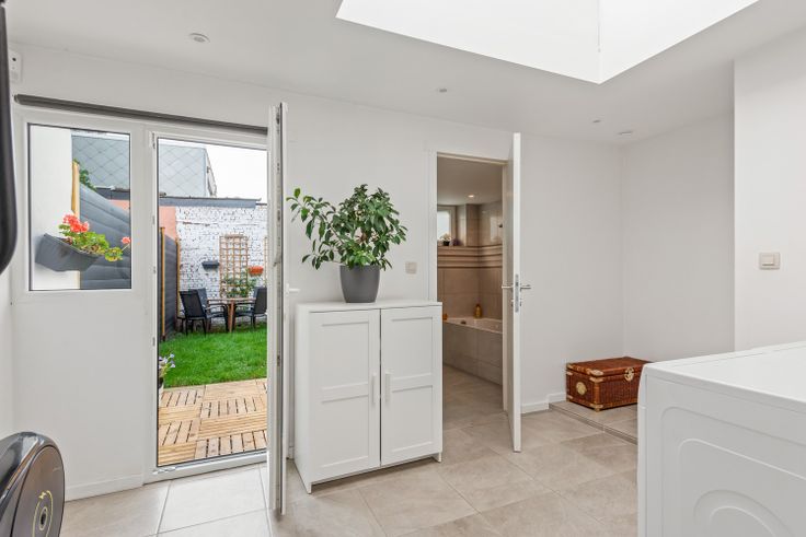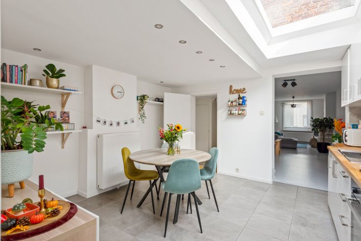 Leuke gerenoveerde woning met 2 slaapkamers te koop te Schoten Deze super leuke woning werd in 2018 gerenoveerd en is instapklaar, ideaal als starterswoning.  Het is gunstig gelegen nabij openbaar vervoer en supermarkten. We betreden de woning via de inkomhal die ons brengt naar de leefruimte.  Deze loopt door tot de keuken die voorzien is van een gasvuur met dampkap, een oven en een wasbak met verlek. De keuken geniet van veel natuurlijk daglicht door de koepel die recent werd geplaatst.  Verder bevindt zich achter de keuken een bijkeuken, met aansluiting voor wasmachine en droogkast. Via de bijkeuken bereikt men de westelijk georiënteerde tuin.  Op het gelijkvloers bevindt zich tevens naast de bijkeuken, een apart toilet en de badkamer is voorzien van een ligbad en een enkele lavabo.  De eerste verdieping bestaat uit een nachthal die uitgeeft op twee slaapkamers (10m²/17m²), allen voorzien van laminaat. Tot slot beschikt de woning over een kelder (17m²).  PLUSPUNTEN: + Gerenoveerd (2018) + Condensatie ketel  + Hoog rendementsglas + Gunstige ligging + Lichtrijke woning  + Ek conform Interesse in deze leuke gerenoveerde woning? Contacteer ons via 03 337 50 70 of info@vbpartners.be voor een afspraak ter plaatse of meer info.   Renovatieplicht: onbekend
