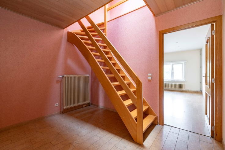 Via een afzonderlijke ingang op het gelijkvloers is er toegang tot het duplex-appartement, gelegen op het eerste en tweede verdiep.