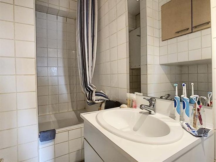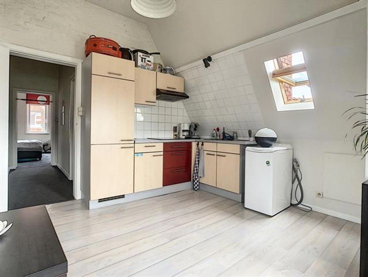 TOURNAI - Entre la Grand Place et l'Escaut, appartement situé au 3ème étage, comprenant: hall, séjour avec coin cuisine (meubles, taques vitrocéramique, hotte, évier, frigo), emplacement machine à laver, wc, salle de bains (meuble vasque, baignoire/douche), chambre. Chauffage central, double vitrage. Aspects énergétiques: PEB n° 20210523006680 - Espec: 878 kWh/m².an - E totale: 43.225 kWh/an Libre au 01/10/2021 - Loyer: 500 € + 50€ (eau, électricité, communs)