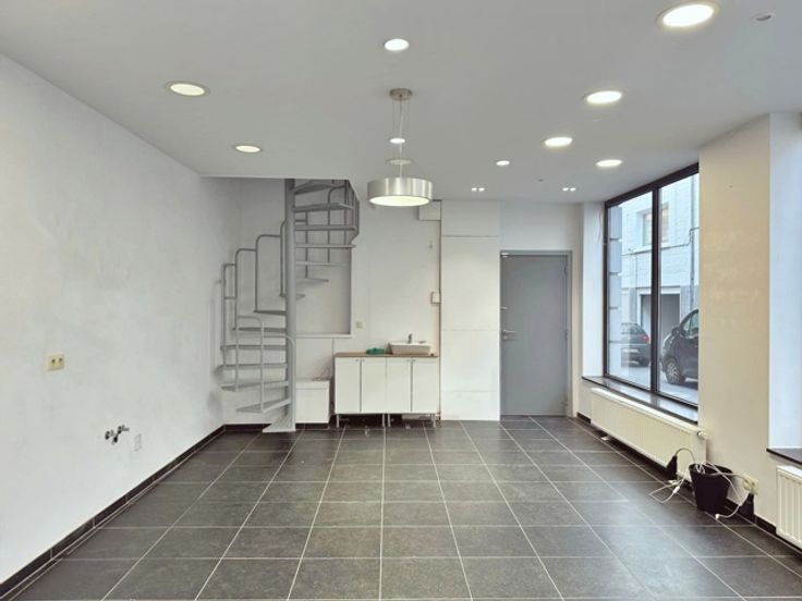 Un escalier mène au premier étage. Vous disposez d’un espace cuisine pratique et fonctionnel permettant de passer les temps de midi dans un espace séparé. La surface commerciale dispose également d’une salle de douche et d’un WC.