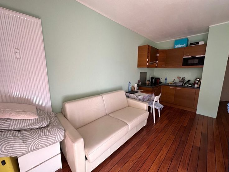 IMMO2GETHER vous propose ce joli studio de 25m2, idéalement situé au 1er étage d'un petite immeuble, entre le quartier de la Bascule et de l'avenue Louise, devant le parc TENBOSH, proches de toutes facilités (transports, commerces,etc,..). Il se compose comme suit: La porte d'entrée donne sur un hall de nuit de 2,5m2, desservant la SDD (douche, lavabo et WC), ainsi que la pièce de vie principale composée dun séjour/SAM/chambre avec cuisine américaine équipée, dressing encastré, ainsi qu'une belle terrasse EST de 4,5m2. Electricité conforme au RGIE. PEB: en cours....Double vitrage. Charges mensuelles communes: entre 200€ et 250€/mois (provision chauffage, prov. eau, syndic, ascenseur, nettoyage, ass batiment et fonds de réserve). Plus d'informations? Contactez-nous au 02/430.24.87 ou sur mb@immo2gether.be.