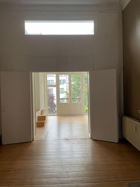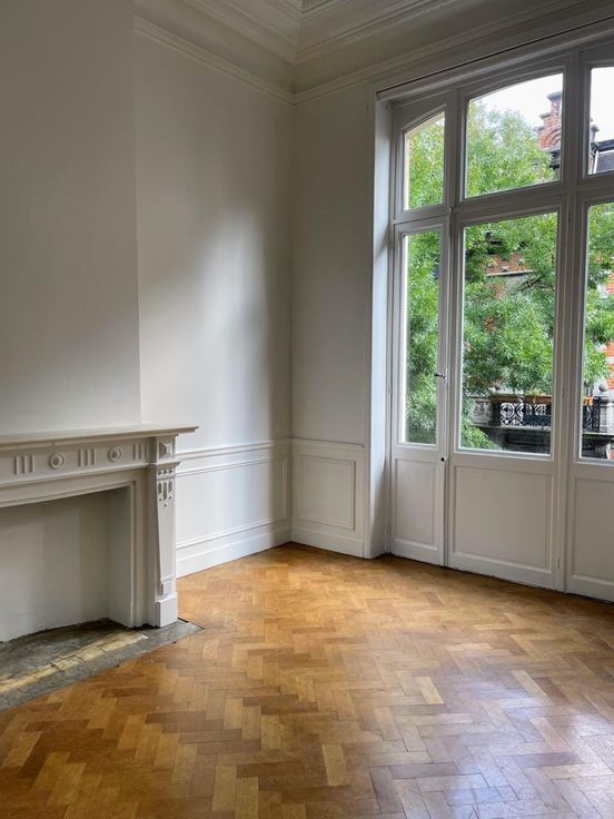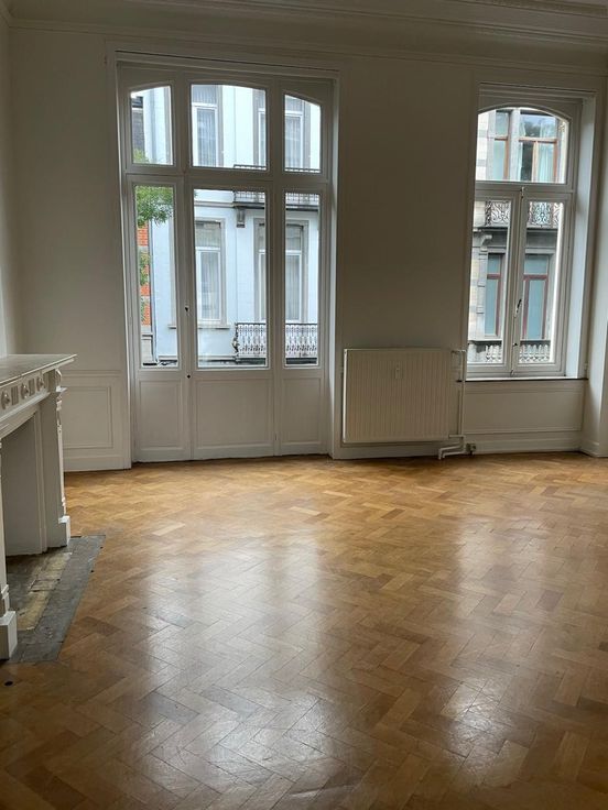 In a maison de maître, an 85 m2 first floor apartment bathed in sunlight (high ceilings, parquet floor) is available for rent. It comprises 3 rooms - 2 big and 1 smaller one, fully equipped kitchen, and one bathroom. Located 4 minutes walk from Metro Louise and 2 minutes from Place Stephanie. The €50 charge is a provision for the heating, water and electricity. Available now. No agents please.