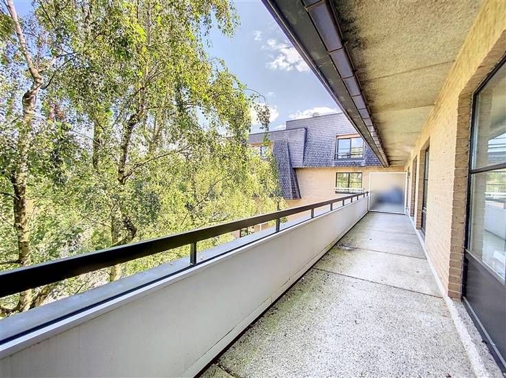Sint-Pieters-Woluwe - Domaine Résidentiel Parmentier: Dit mooie appartement (ongeveer 95 m²) op de 4e/5e verdieping is ideaal gelegen in het hart van een privépark van 1,2 hectare en bestaat uit een inkomhal met vestiaire, een lichte woon/eetkamer (ongeveer 50 m²) die uitgeeft op een open keuken en een terras (ongeveer 18 m²).