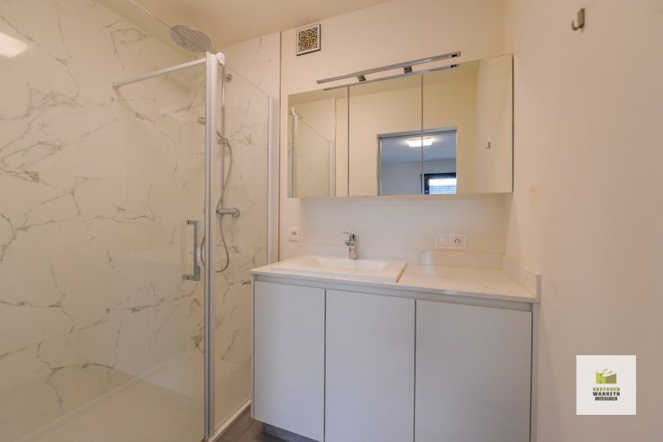 Indeling: Binnenkomen in de inkomhal met daar ook een ruime berging/wasplaats en toegang naar het apart gastentoilet. Verder de open geïnstalleerde keuken (vaatwas, frigo, kookplaat), living met ingebouwde kasten en met toegang naar het ruim overdekt zuidgericht terras en de slaapkamer met ingebouwde kasten met aanpalende badkamer met inloopdouche en lavabo.