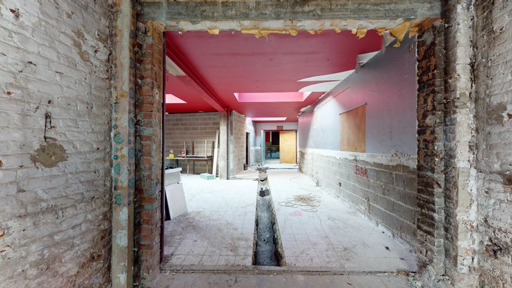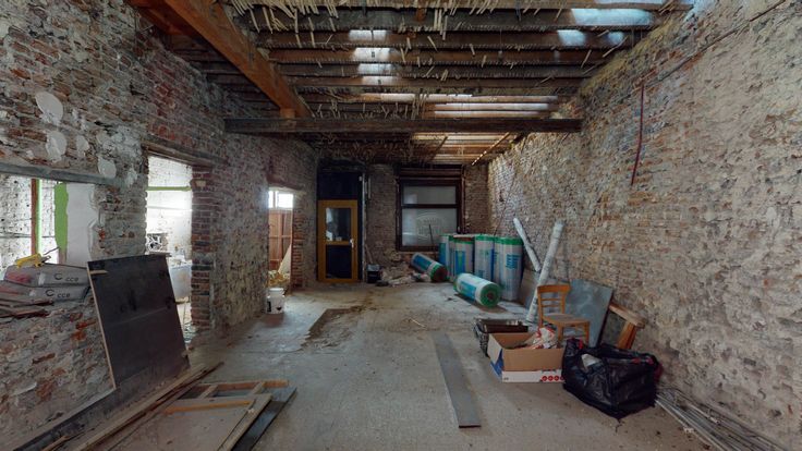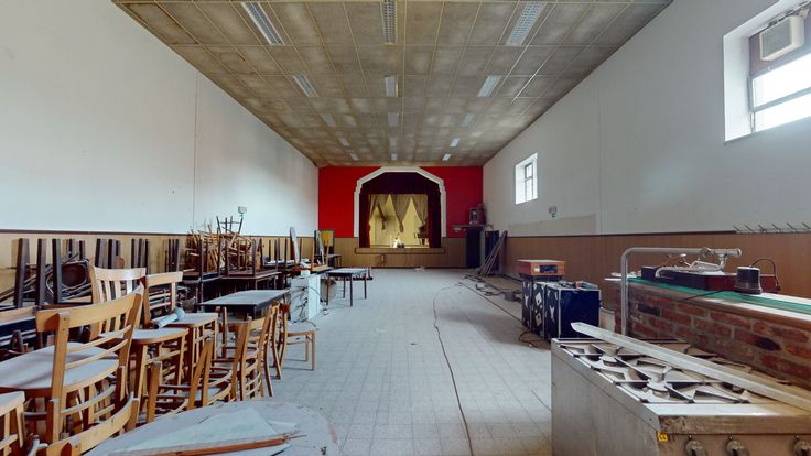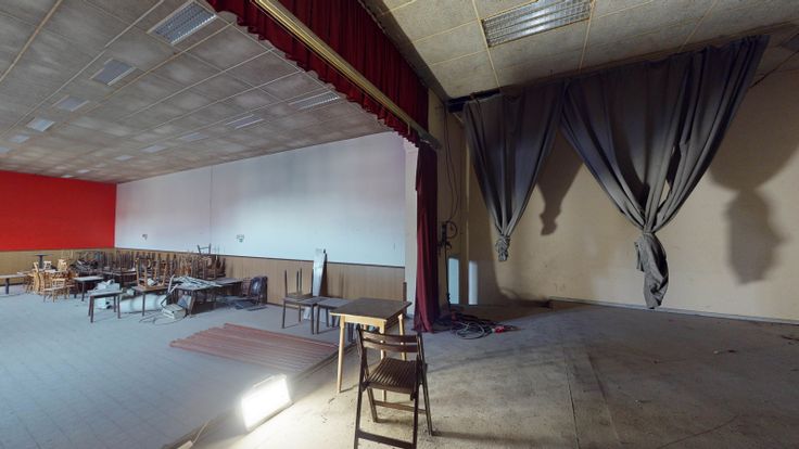 Superbe ensemble immobilier en l’état de gros œuvre "ancienne Maison du Peuple" d’une superficie exploitable de +/- 700m² composé d'une salle de fête de +/- de 300m² avec scène, loges, cuisine, sanitaires et cave, un restaurant de 52 couverts de 180m².