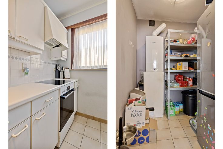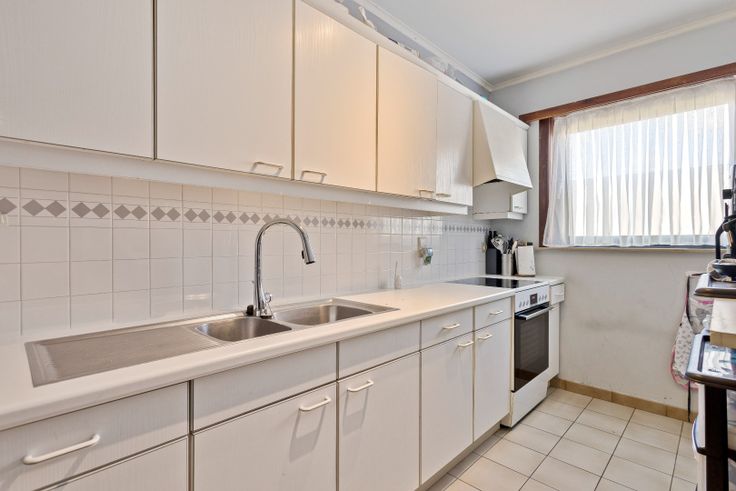 Dit appartement is gunstig gelegen nabij Verbrandendijk en Dorp Oost. Het appartement 84m² (1eV-Links) omvat een inkom met gastentoilet en vestiaire, een lichtrijke woonkamer 32m², een keuken met boven- en onderkasten, een aparte bergplaats, een badkamer voorzien van een ligbad en lavabo, 2 slaapkamers waarvan één kamer met terras. Tevens is er op het gelijkvloers een bergkamer 17m² met toegang tot een privatieve tuin 33m² en een inpandige garage met automatische poort en een diepte 7,50m. Bijzonderheden: individuele elektriciteits- en gasmeter, individuele CV ketel op aardgas, gemeenschappelijke watermeter, dak vernieuwd in 2015 met PUR Recticel 10cm.