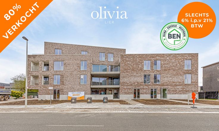 Instapklare nieuwbouwappartementen aan 6% btw – Toplocatie in Lier Wonen in Residentie Olivia betekent kiezen voor comfort en zorgeloos genieten. Elk appartement beschikt over een zonnig terras waar je kan ontspannen in jouw eigen stukje zon – of je nu lekker alleen bent met een boek of gezellig samen met vrienden. Wat biedt Residentie Olivia? - Keuze uit 1, 2 of 3 slaapkamers - Ruime woonoppervlaktes voor jouw comfort - Volledig uitgeruste appartementen met moderne afwerking - Privaat terras of tuin – jouw plek om te ontspannen - Veilige fietsenstalling en parkeerplaatsen Residentie Olivia telt 50 appartementen, dus er is altijd een woning die bij jou past. Wat ze allemaal gemeen hebben? Ze baden in licht en ruimte! De grote, hoge ramen zorgen voor een overvloed aan natuurlijk licht vanaf de eerste zonnestralen. Met woonoppervlaktes van 63 m² tot 133 m², kies je zelf de ruimte die bij je levensstijl past, of het nu gaat om een appartement met 1, 2 of 3 slaapkamers. En ook buiten leef je volop! Zodra je de terrasdeuren opent, kom je op een zonnig terras, perfect om de dag te starten met een kop koffie of om in alle rust van de middagzon te genieten. Kinderen kunnen er veilig spelen, want de balustrades van de hoger gelegen terrassen zijn extra beveiligd met moderne, stevige spijlen. Voor meer informatie of om een afspraak te maken, neem contact op met onze makelaar Sven Van Holst via 0499 16 57 11. Hij helpt je graag verder!