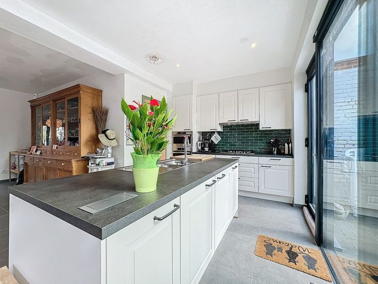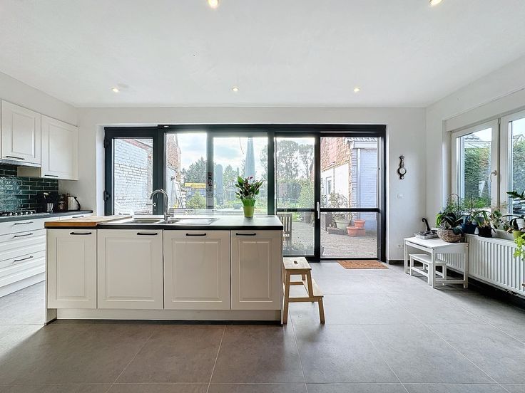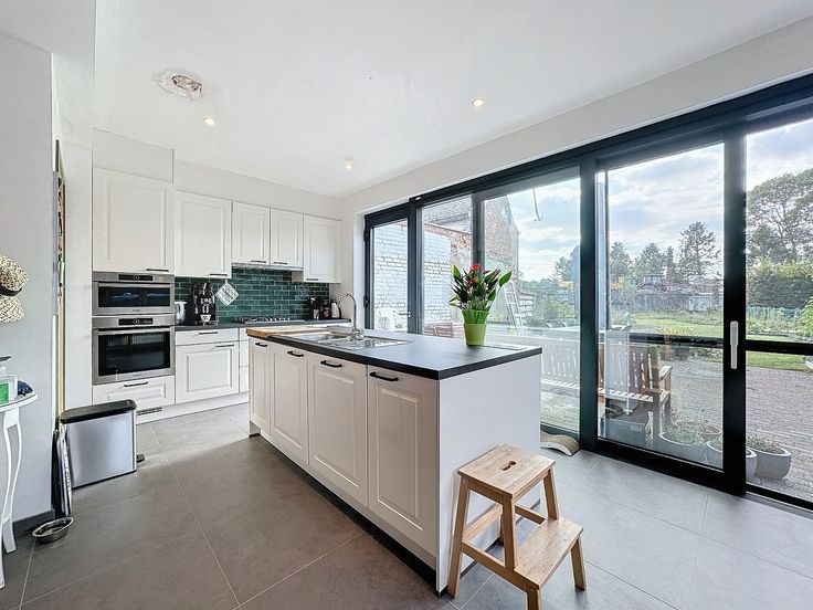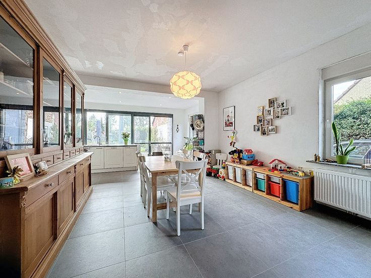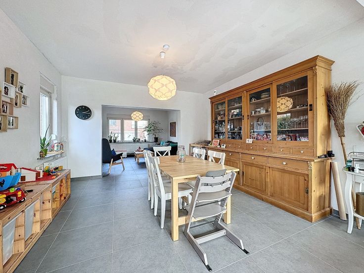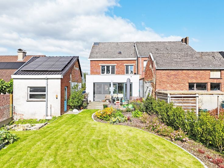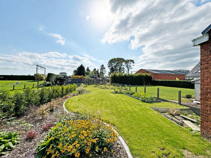 Er is een nieuw aangelegde tuin met terras, oriëntatie op het zuiden! Oprit, garage, voortuin, ... is allemaal aanwezig.