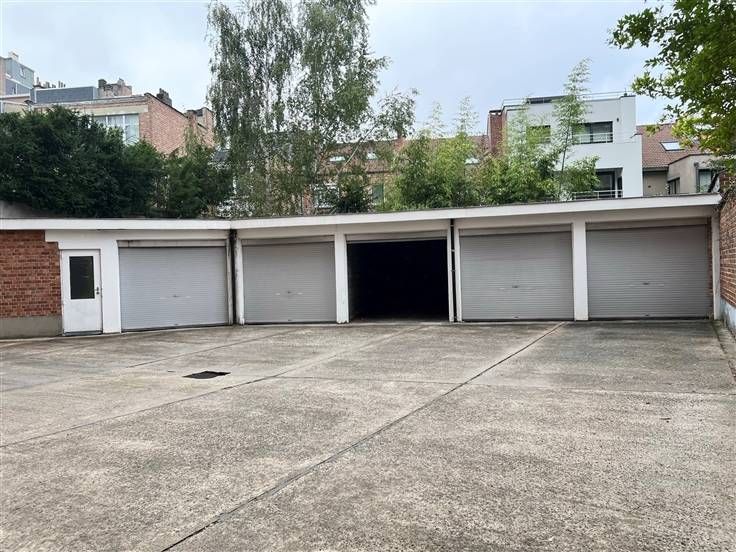 Garage aan de achterkant van een gebouw, toegankelijk via een elektrische deur aan de straatkant. Breedte = 2,50 m; Hoogte = 1,99 m; Diepte = 6,61 m.