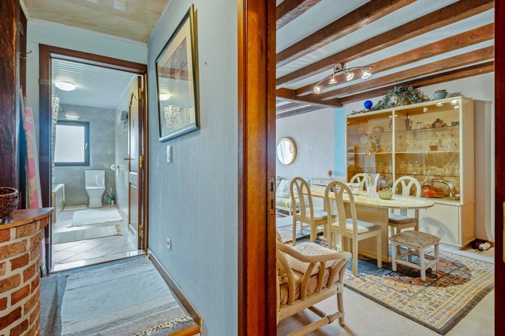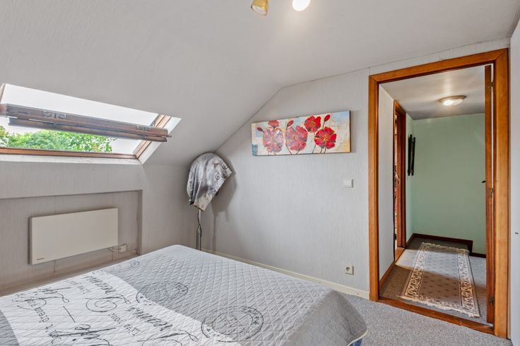 Deze op te frissen bel-etagewoning is net even buiten de dorpskern van Stabroek gelegen, maar ook het centrum van Putte is van hieruit vlot bereikbaar. Scholen, winkels en openbaar vervoer bevinden zich allemaal in de nabije omgeving. U komt de woning binnen via een aparte inkomhal op tegelvloer. De woning beschikt op het gelijkvloers over een grote, inpandige garage met handmatige poort en een berging. Op de eerste verdieping vindt u een erg lichte woonkamer met aangrenzend de netjes onderhouden keuken, een 1e slaapkamer en de badkamer met ligbad, toilet en dubbele wastafel met meubel. Vanuit de woonkamer geeft een glazen deur toegang tot het gezellige, zuidgeoriënteerde terras met zicht op de tuin. Een vaste trap leidt verder naar de 2e verdieping waar zich een ruime master-bedroom, een kleinere kinderkamer en een apart toilet bevinden. Vanuit het toilet heeft u toegang tot een praktische zolderberging. Het totale perceel heeft een oppervlakte van 618m². De zuidgeoriënteerde tuin werd keurig aangelegd en beschikt over een overdekt terras en mooie tuinberging. Renovatieplicht: ja