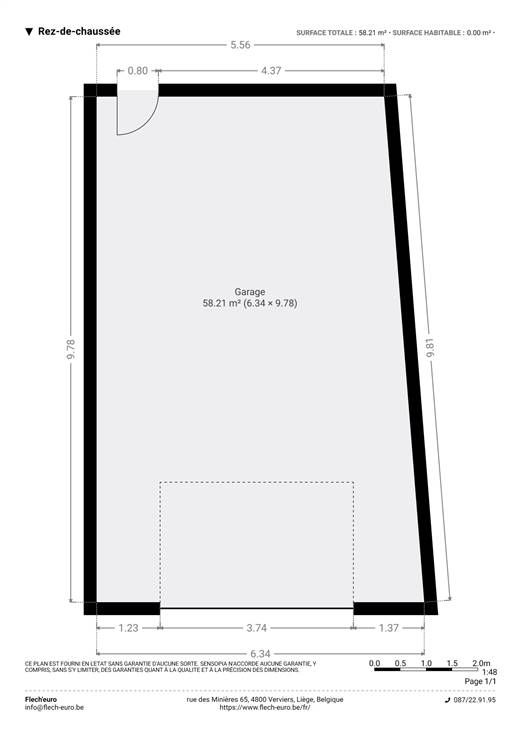 Sorry er is geen nederlandse vertaling beschikbaar. STEMBERT, bel entrepot de 58m² entièrement remis à neuf. Compteurs séparés, porte électrique Hormann d'une hauteur de 3.4m sur une largeur de 3.7m
