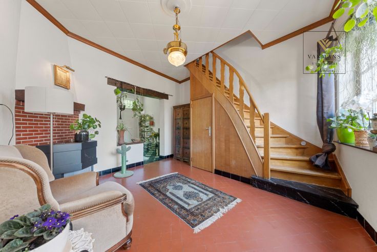 Charmante woning met veel potentieel om te renoveren. Gelegen in een rustige buurt met een prachtige ingesloten tuin die zuidgericht is. Er is ook een toegang via de zijkant van de woning en de tuin is volledig ingesloten en omheind. Indeling gelijkvloers : inkomhal, living, eetplaats, keuken, toilet, badkamer met douche en lavabo, ruime berging en droge kelder ideaal om voeding op te bergen. Eerste verdieping telt 2 kamers en de ingerichte zolder is een derde mooie en ruime kamer. Interessante woning voor wie op zoek is naar een te renoveren half open woning met mooie tuin op een rustige locatie. Contacteer ons 0475/34.00.40 voor meer info en bezoek.