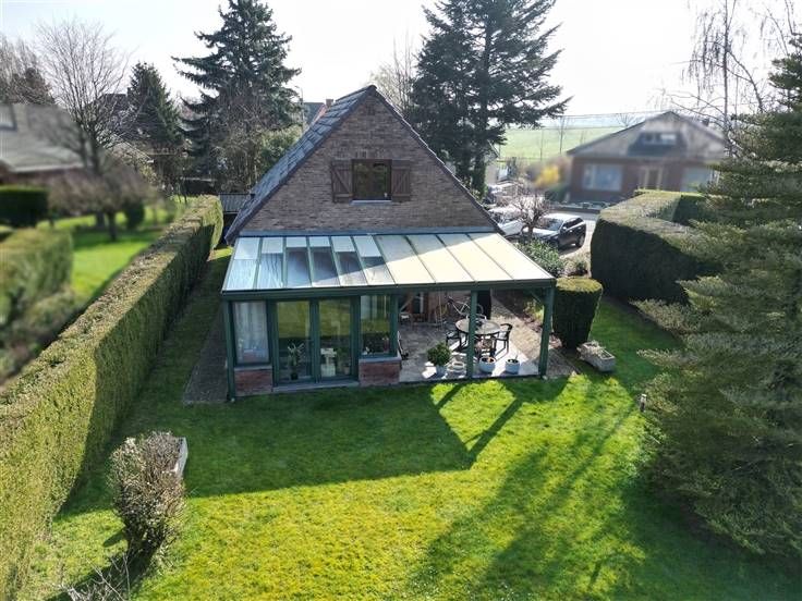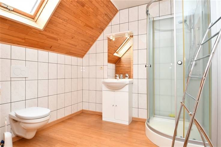Composition: Rez-de-chaussée: Hall d'entrée (4,6 m²), spacieux living (22,6 m²), cuisine équipée (6,5 m²)(hotte, four, évier, taques vitro, four à micro-onde), terrasse (14,6 m²), jardin (400 m²), véranda (15,2 m²), une chambre (9 m²), salle de bains (5 m²), hall de nuit (12,3 m² 1er étage : Hall de nuit (10,6 m²), 2 chambres (16,7 m², 18,3 m²), salle de bains (7 m²)
