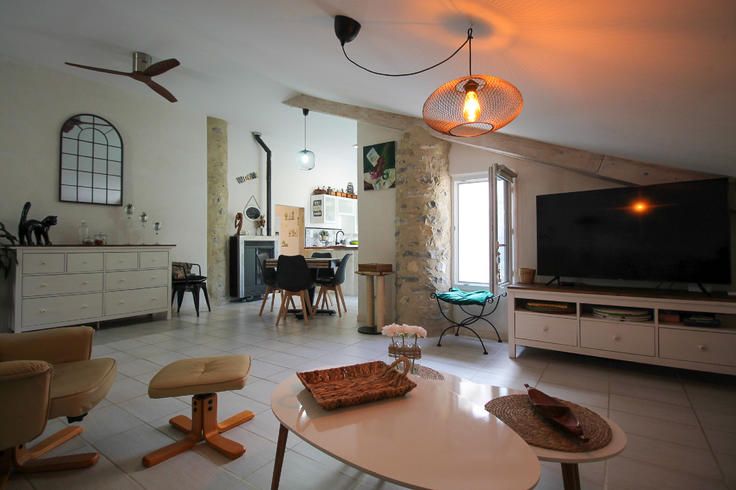 A une vingtaine de kilomètres de Laragne, dans un petit village de moyenne montagne, dans le Parc Régional des Baronnies Provençales, superbe maison de village entièrement rénovée en 2015 et très bien entretenue avec petit jardin et terrasse tropézienne. La maison comprend au niveau supérieur accessible par la rue montante un grand séjour cuisine donnant sur la terrasse tropézienne, deux chambres et une salle d'eau. Au niveau inferieur donnant sur une terrasse avec une entrée indépendante, une chambre avec salle d'eau, un couloir/dressing et WC utilisée en location saisonnière. Au même niveau se trouve un ancien garage agricole transformé grand atelier-cave avec buanderie et cave a vins. Séjour-Cuisine avec insert central 44m2 Terrasse Tropézienne 15.5m2 Chambre 1 8.7m2 Chambre 2 avec dressing 12.7m2 Salle d'eau 3.7 m2 Dégagement 3.7m2 Partie indépendante: Chambre 3 13.2m2 Salle d'eau 3m2 Dégagement 11 m2 (dressing) Atelier - Buanderie - Cave a vins 69m2 Jardin 100m2 Votre agent commercial 3G IMMO sur place EI - Brice VIARD Inscrit au RSAC de ROMANS 829 868 710, Tel : 04 15 40 10 28, Site 3gimmo : https://www.3gimmobilier.com/viard Selon l'article L.561.5 du Code Monétaire et Financier, pour l'organisation de la visite, la présentation d'une pièce d'identité vous sera demandée. Les informations sur les risques auxquels ce bien est exposé sont disponibles sur le site Géorisques : www.georisques.gouv.fr