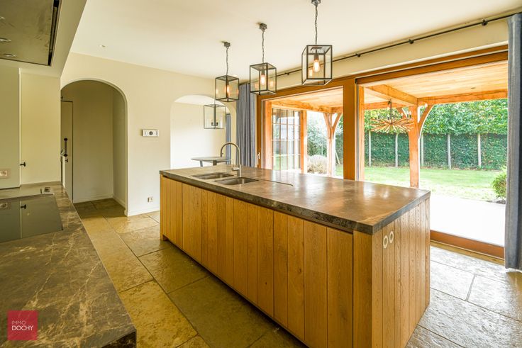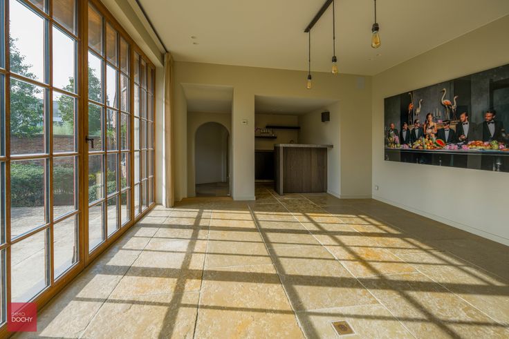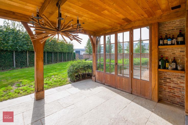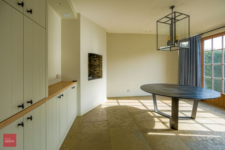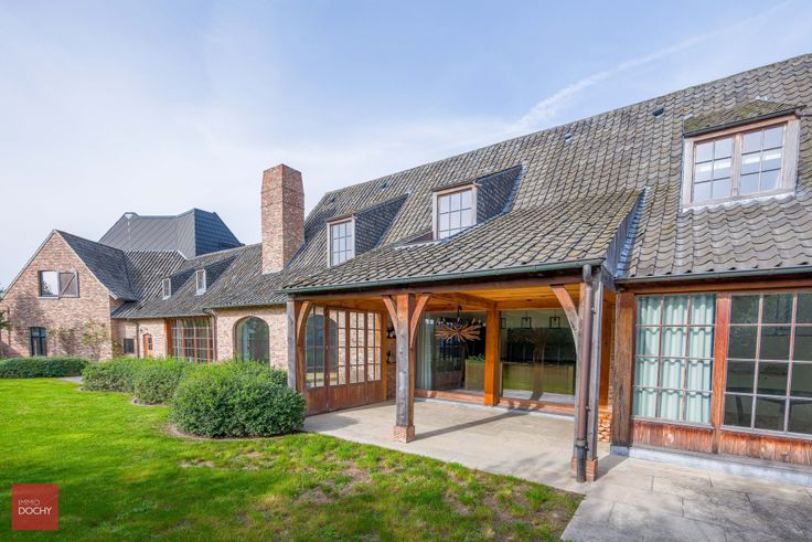 Ruime en zeer luxueus afgewerkte villa gebouwd in oude recuperatiestenen, bestaande uit inkomhal, bureel, ingerichte luxe keuken met frigocel, ruime functionele wasplaats, dagelijkse eetplaats met open haard, living met gashaard, speelkamer (bar of hobbykamer) met open haard, 4 slaapkamers, 3 badkamers, 2 dressings, fitnessruimte, kelder met uniek geklimatiseerde wijnkelder, zolder, dubbele garage, zongerichte tuin en overdekt terras. Hoogwaardige afwerking met oa. vloerverwarming (aardgas), veel ingebouwde kasten, alarmsysteem, camerasysteem, toegangspoort, airco, wijnkoeling, centraal muzieksysteem, led verlichting, miele-toestellen enzovoort.