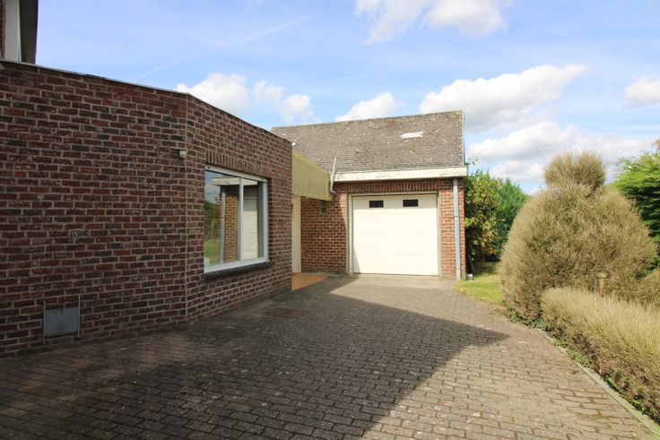 Het gelijkvloers omvat een inkomhal, lichtrijke leefruimte, ingerichte keuken met eethoek, apart toilet, garage met nog extra bergruimte, overdekt terras, parkeergelegenheid voor meerdere wagens en tuin.