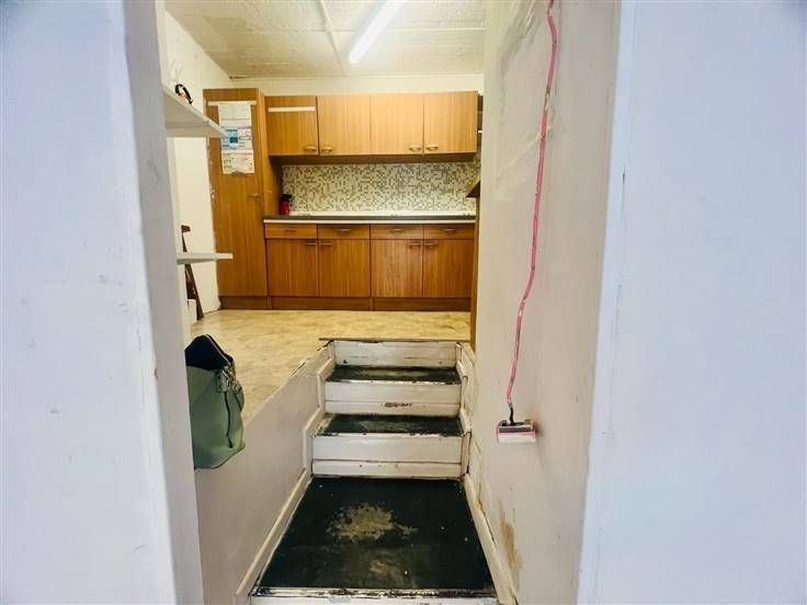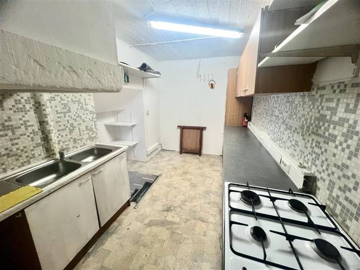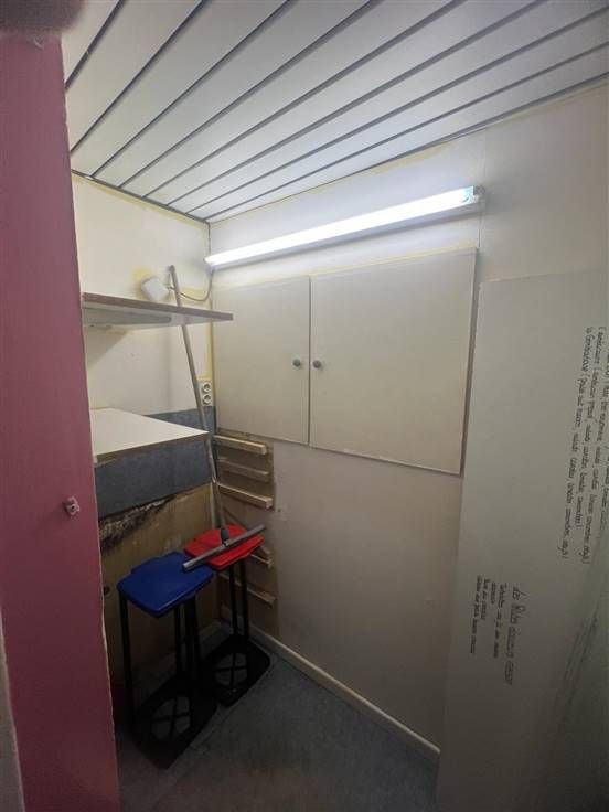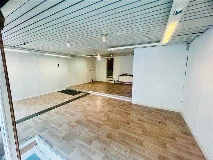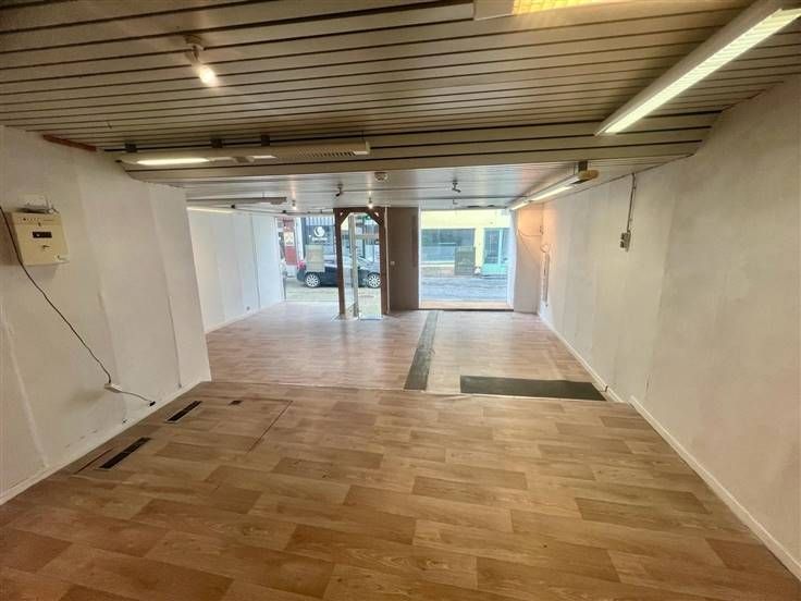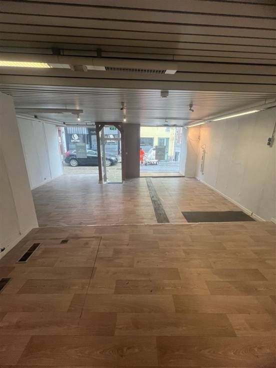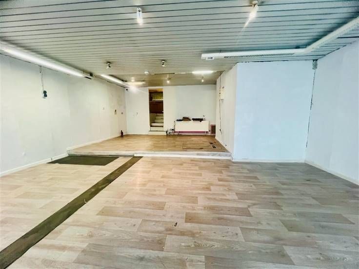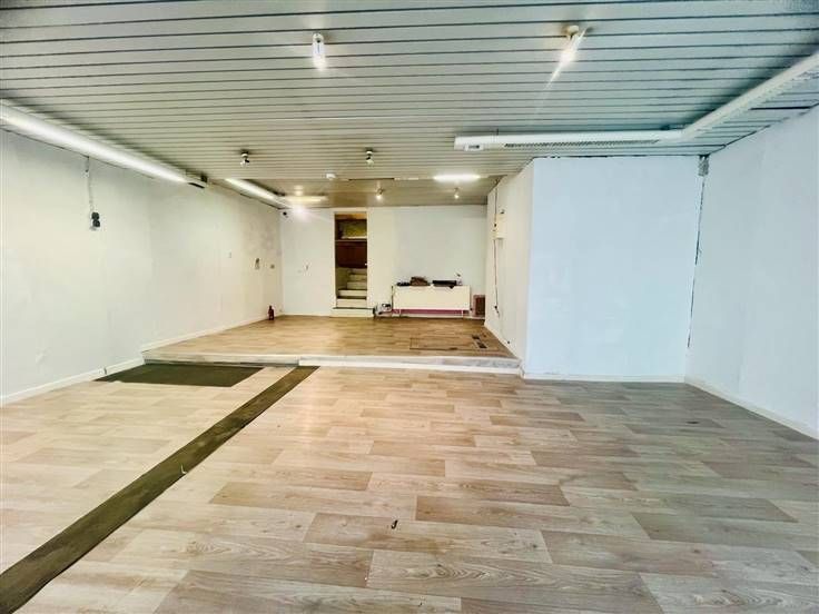 REZ de 75m2 comprennant de belles vitrines, 1 grand espace, 1 wc séparé, 1 petit rangement et 1 espage aménagé en cuisine actuellement