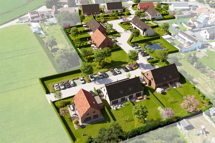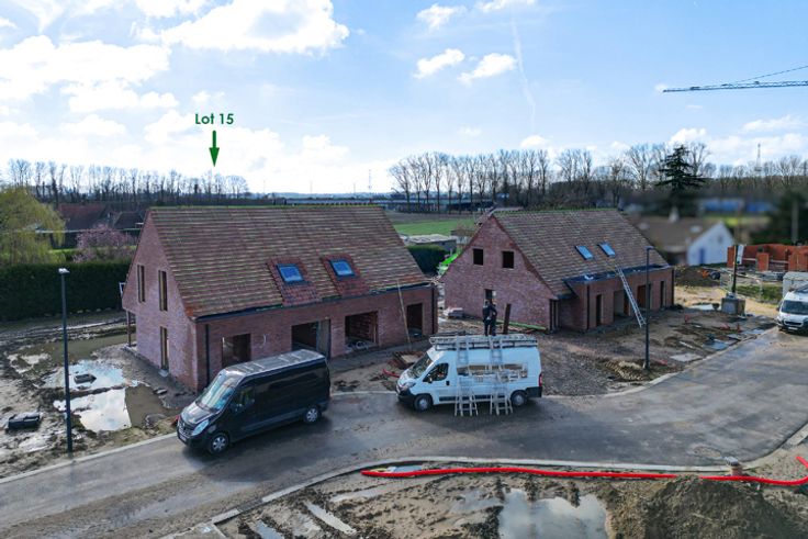 Caractéristiques techniques : châssis PVC gris anthracite double-vitrage et velux dans les chambres et la salle de bain, portes intérieures prêtes à peindre, seuils en pierre bleue, escalier en hêtre, chauffage central au gaz de ville, chaudière de marque Vaillant, radiateurs, VMC simple flux de type C+ avec extraction dans les chambres, carrelage au choix avec plinthes assorties pour le rez-de-chaussée, la salle de bain et le hall de nuit à l’étage d'une valeur de 35€/m² HTVA, grès CERAM (30 x 30) d'une valeur de 20€/m² HTVA pour le garage, faïences dans la douche et autour de la baignoire (35€/m² HTVA), revêtement de sol des chambres en option, garage avec porte sectionnelle motorisée de teinte gris anthracite, murs séparatifs entre les maisons mitoyennes de 1,50 m sur 1,80 m, citerne de récupération d’eau de pluie de 10.000 litres, pompe non comprise, tuyau Socarex