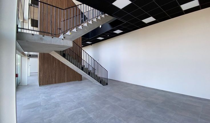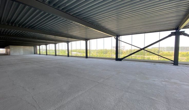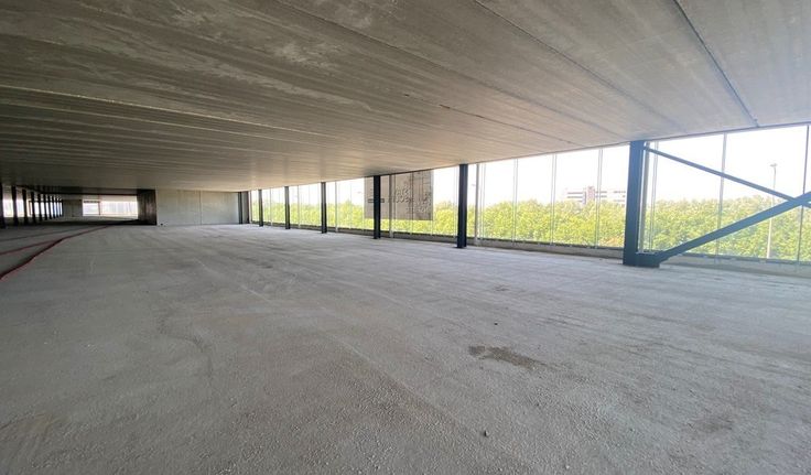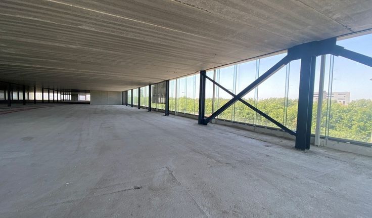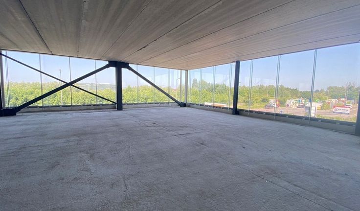 Specificaties: aluminium schrijnwerk met dubbel glas, landschapskantoor, plafond met betonnen gewelven, chape, afvoer sanitair en keuken voorzien, telenetaansluiting, casco oplevering