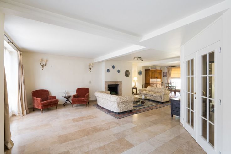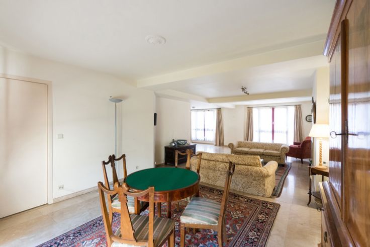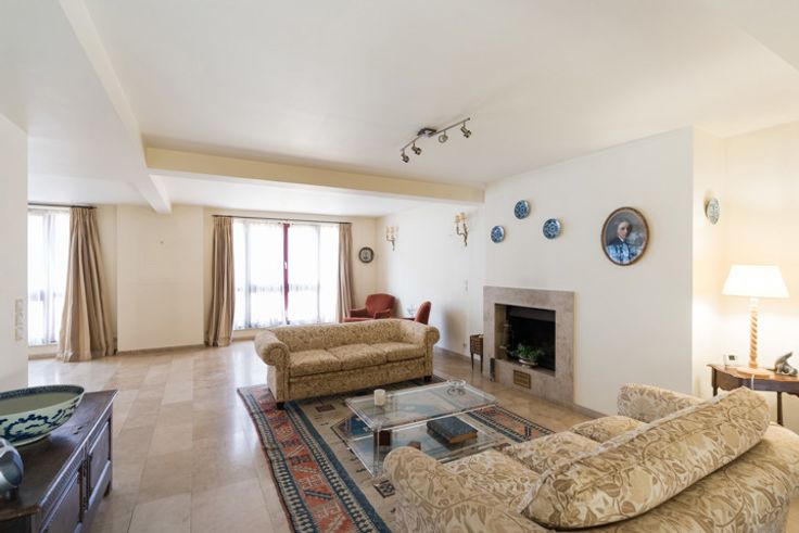 WOLUWE-SAINT-PIERRE, in de zeer gewilde buurt van Montgomery, HALFOPEN WONING (4 slpk/3 badk/kantoor) van +/- 370m² bebouwd oppervlakte op een perceel van +/- 2 aren in een binnengebied. Het is als volgt samengesteld, op de begane grond een grote entreehal van 28m², twee kantoren van 30 en 17m², apart toilet, wasruimte/ stookruimte, technische ruimte (lift), opslagruimtes. Op de 1e verdieping, trapgang, garderobe met gastentoilet, prachtige woonkamer van 64m² met open haard en toegang tot het terras, een volledig uitgeruste keuken van 14m² (2007). Op de 2e verdieping, trapgang, 2 slaapkamers van 15 en 25m² met kasten, een badkamer van 14m² (bad, wastafel, bidet, wc), een kleedkamer, een doucheruimte van 9m² (douche, wastafel), 2 grote slaapkamers van 42 en 30m² waarvan één met kasten, een doucheruimte van 10m² (douche, 2 wastafels, kasten). Het pand heeft ook 2 parkeerplaatsen. Twee liften bedienen alle verdiepingen. Elektriciteit niet-conform. EPC: F (313 kWh/m²/jaar). Video: https://youtu.be/W4Nr5Fbvoxo. Snel te ontdekken bij L&P!