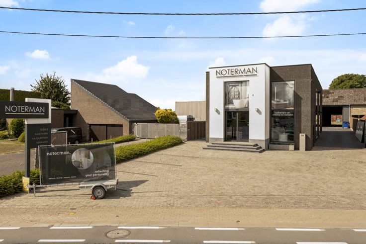 Op de gelijkvloers bevindt zich de showroom en een bureauruimte. Op het eerste verdiep is er een douche aanwezig en een keuken, en bevindt zich een grote ruimte die kan worden ingericht naar eigen wensen. Dit werd hiervoor gebruikt als bureau. Achter het pand strekt zich een grote loods en een weide uit, met prachtige vergezichten over de Vlaamse Ardennen.