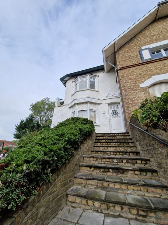 Charmante koppelwoonst in de beschermde Dumontwijk te De Panne. De woning geniet een zeer goede en rustige doch centrale ligging op enkele stappen van zee en commercieel centrum en biedt u op een perceel van 481m²: inkomhal met apart toilet, zonnige woonkamer met aansluitend eetruimte, open keuken, berging die de keuken op de inkomhall verbindt. Rondom de woning aangenaam stuk tuin en terras (Zuid-west georiënteerd). Op de 1ste verdieping bevinden zich 2 slaapkamers waarvan één met extra slaaphoek/dressingruimte en badkamer met douche en lavabo. Op de 2de verdieping bevindt zich de 3de slaapkamer met eigen douche. Individuele verwarming op aardgas. Dak recent vernieuwd en geïsoleerd ('22). Elektrische installatie conform.