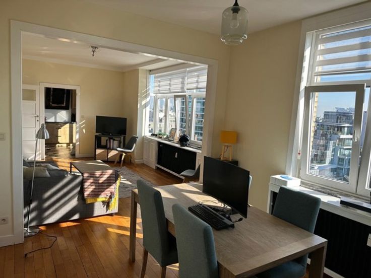 *** Visites et renseignements uniquement au 0496 48 19 80 *** Bureau Gestion & Propriété a l'immense privilège de vous présenter ce magnifique Penthouse de 104m² brut, entièrement rénové avec la plus belle vue du quartier, avis aux amateurs de luminosité et de quiétude. Il se compose d'un hall d'entrée, un séjour avec cuisine USA super équipée, une salle de bain, deux chambres, une buanderie, un wc séparé et une cave. Libre à l'acte. Coup de coeur assuré... Immeuble impeccable avec conciergerie...