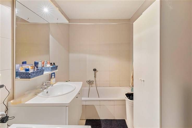 Goed gelegen, instapklaar appartement (2e verdieping) gelegen in kleine residentie bestaande uit een inkomhal, ruime lichtrijke leefruimte, open ingerichte keuken met toestellen (dampkap, kookvuur), berging aan de keuken (aansluiting wasmachine), afzonderlijk toilet, ingerichte badkamer met alle comfort (lavabo in meubel, ligbad), twee slaapkamers, terras en overdekte staanplaats. Ramen: PVC, dubbele beglazing. Gunstig EPC. Zeer goede verbinding naar E34, N70 of E17. Ook interessant als belegging! Plan uw bezoek nu in en ontdek snel meer!