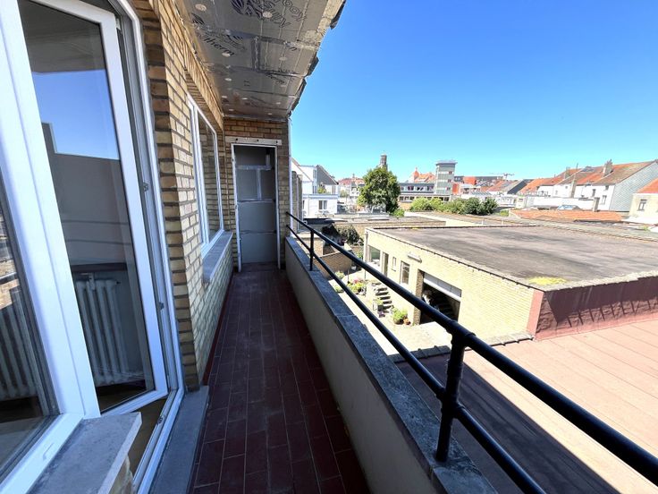 Te renoveren appartement genietend van open zichten, vlakbij het centrum van Knokke. Indeling: inkomhal met apart toilet. Lichtrijke woon- en eetkamer met open zichten. Geïnstalleerde recente keuken voorzien van alle apparatuur. Berging. Wasplaats/berging met aansluiting voor wasmachine en droogkast. 1ste ruime slaapkamer met toegang tot het terras achteraan met berging. Tweede slaapkamer. Badkamer (lavabo en douche). Dak is reeds geïsoleerd. Gemeenschappelijke fietsenberging.