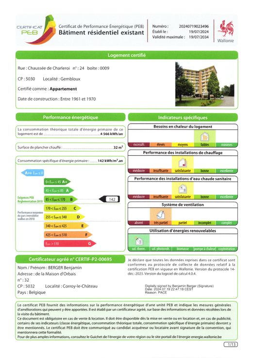 Joli studio à vendre pour un investisseur ou pour une personne âgée souhaitant vivre au calme et en sécurité tout en gardant son indépendance, sans devoir posséder de voiture. Il est situé dans la résidence 3ème âge « Le Vert Galant » destinée à des personnes de plus de 60 ans à Gembloux, proche des commerces, de la gare et du centre-ville avec un accès aisé depuis Namur, Bruxelles et Charleroi. Le studio se situe au sixième étage avec ascenseur et offre donc une vue panoramique sur tout Gembloux. Il se compose d’un hall d’entrée, d’une salle de douche avec WC et lavabo, d’un coin cuisine avec frigo, taque vitro et micro-ondes et d’une belle pièce de vie avec une baie donnant sur un balcon (châssis avec double vitrage) avec tente solaire électrique. Au sous-sol , petite cave privative. Compteur électrique individuel (contrôle électrique ok > 2038). chauffage commun avec calorimètres. La résidence dispose de plusieurs salles communes, dont une bibliothèque, un grand restaurant et de nombreux parkings. Les services reprennent la possibilité de prendre ses repas à prix coutant, une garde 24h/24h, diverses activités, … Le studio est libre d’occupation. Prix de vente : 65.000€. PEB B - Espec : 142 kWh/m².an - Etotale : 4566 kWh/an - N°20240719023496. Pour plus d'infos et consulter les plans, rdv sur www.lartisandelimmobilier.be ou téléphonez au 0475/871.841.