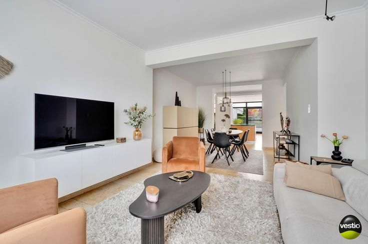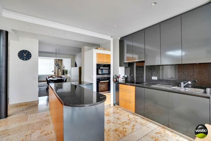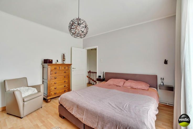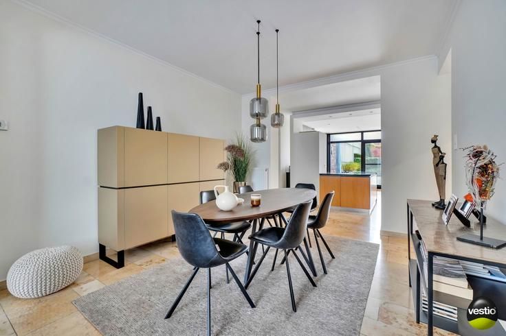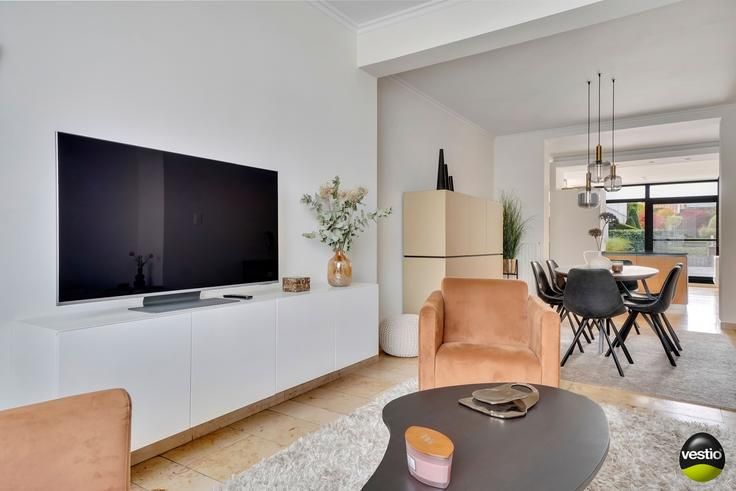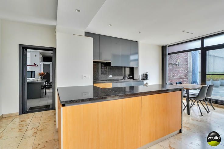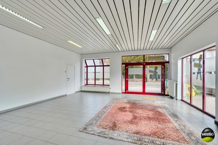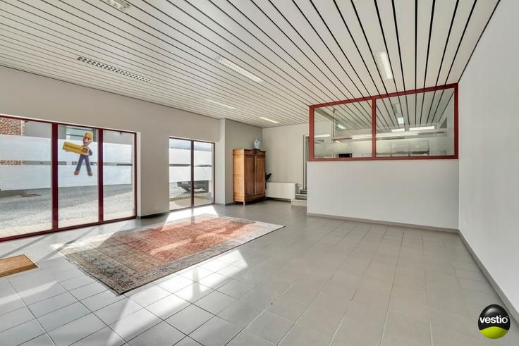 Handelspand met ruime woning gelegen te Riemst, Visésteenweg 190.Uiterst gunstige locatie langs de N671 verbindingsweg Riemst-Visé. De autosnelweg is vlot bereikbaar op 4km. Alle dagelijkse voorzieningen, supermarkt, school,.. bevinden zich op korte afstand.Dit pand op een perceel van 14A34CA omvat een garage/werkplaats/burelen/toonzaal (540m²), een woning met 3 slaapkamers (165m²) en een appartement met 2 slaapkamers (76m²).Het geheel is zeer functioneel ingedeeld en is in uitermate goede staat. Volledig instapklaar.Woning :Op het gelijkvloers leidt de inkomhal met vestiaire en gastentoilet naar een luchtig en hedendaags open geheel van living, eetkamer, moderne leefkeuken en extra TV-ruimte. De stijlvolle keuken is volledig ingerichtmet alle keukentoestellen: koelkast, inductiekookvuur, dampkap, vaatwasser, oven, microgolfoven. Grote raampartijen in de keuken en de TV-ruimte bieden een mooi tuinzicht. Verder tref je een praktische berging/wasplaats.Op de eerste verdieping geeft de nachthal toegang tot 3 slaapkamers, 2 badkamers en een berging. Badkamer 1 is uitgerust met een ligbad/een nachttoilet/een bidet/wastafel. De tweede badkamer werd ingericht met douche en wastafel.De geïsoleerde bergzolder is bereikbaar via het vlizoluik in slaapkamer 3.De woning is deels onderkelderd met een bergruimte en een CV-ruimte.De zuid georiënteerde tuin werd smaakvol en onderhoudsvriendelijk aangelegd en verzekert de bewoners de nodige rust en privacy. Hier beschik je over een ruim t