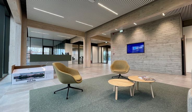 Troeven: nieuw duurzaam gebouw met mooie architectuur - faciliteiten zoals cafetaria en gebruik vergaderzalen - lichtrijk gebouw door grote raampartijen