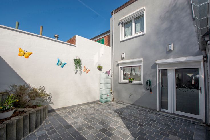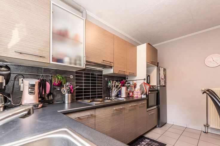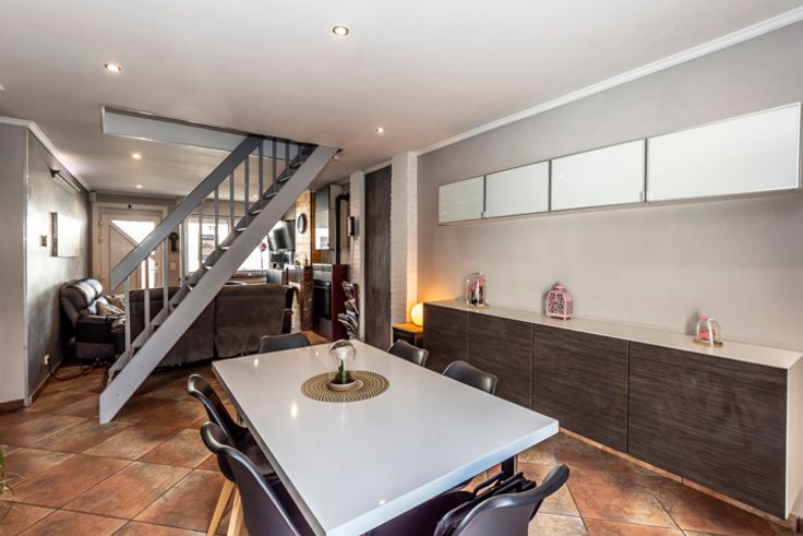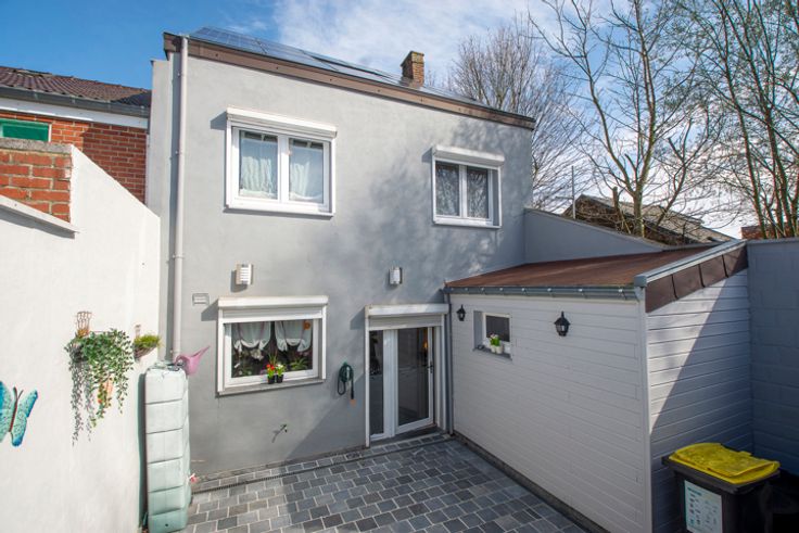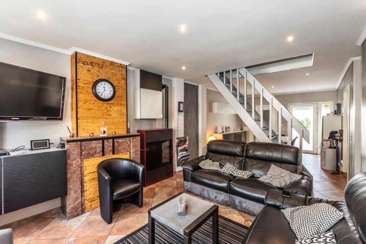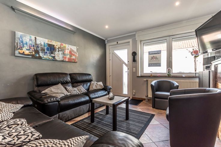 !! SOUS OPTION, PLUS DE VISITES !! Réf : 24543. Sympathique 3 façades tout confort, offrant +/- 175m² habitable, permettant un emménagement immédiat, vous séduira à coup sûr. Elle a de plus était rénovée dans des normes permettant d'atteindre un bon rendement énergétique (PEB C), tellement importante en ces temps. Et pour terminer ce préambule, cette habitation se situe au centre de la sympathique et dynamique commune de FRAMERIES, en proximité de toutes les commodités nécessaires au quotidien. Elle se compose au sous-sol d'une surprenante petite salle de cinéma entièrement équipée. Suivi ensuite au RDC d'un très beau séjour de +/- 35m², d'une cuisine équipée avec espace à déjeuner (Taque électrique, Hotte, Four, Micro-onde, L-V, Frigo combi, Evier simple), 2 Pièces à usages polyvalents pouvant convenir à plusieurs usages (Stockage/Buanderie/SDB ou bureau), WC séparé. Pour continuer au 1er étage par un hall de nuit desservant 3 belles chambres et une SDB équipée (Baignoire, Cabine douche, Simple vasque avec meuble et un WC). Pour terminer au 2ième par un grenier aménagé, permettant la mise en place d'une spacieuse 4ième chambre en format suite enfant. Côté technique : Châssis double vitrage PVC avec volet partout, CC gaz, Boiler Hydrothermique, Installation Photovoltaïque de 16 panneaux, Feu aux pellets design, etc..). Côté extérieur : Magnifique terrasse aménagée avec beaucoup de goût dans un esprit résolument ZEN, détente garantie et équipée d'un petit abri. A partir de 180