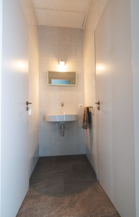 De sanitaire ruimte heeft twee toiletten en een handwastafel.