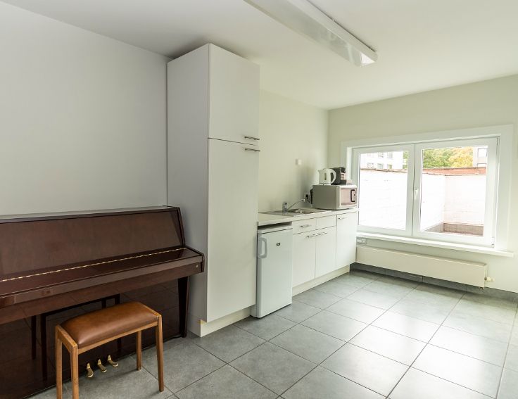 Aan de achtergevel ligt een extra kantoorruimte of archiefruimte ( 3,6 m x 3,4) en een kantoorruimte met een handige kitchenette.