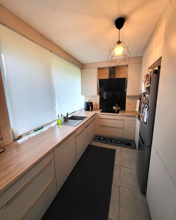 Deze woning, alles op het gelijkvloers, biedt aan de binnenkant meer ruimte dan de voorgevel doet uitschijnen.