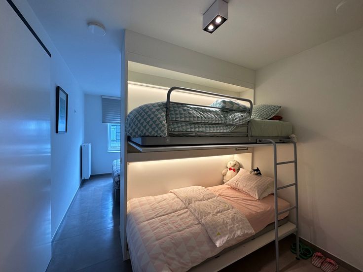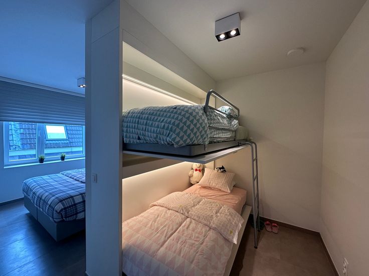 De slaapkamer beschikt over praktische inbouwkasten die voldoende opbergruimte bieden. Daarnaast grenst aan de slaapkamer een tweede polyvalente ruimte, die naar eigen wens kan worden ingericht als kantoor, hobbykamer of extra opslagruimte.