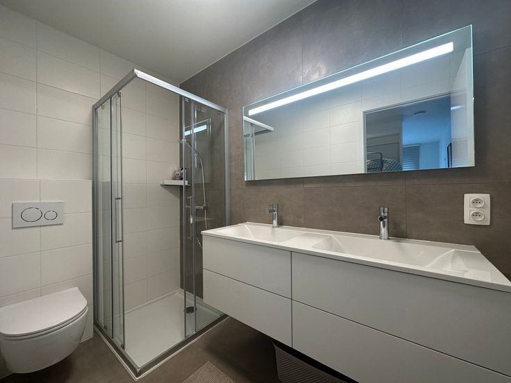 De badkamer is modern en functioneel ingericht met een douche, lavabo en toilet. Bovendien is er in het appartement een handige berging voorzien met een aansluiting voor de wasmachine, zodat u alle faciliteiten binnen handbereik heeft.