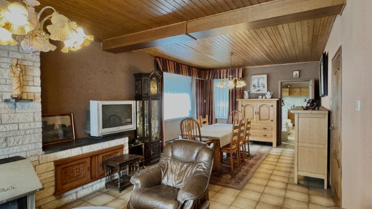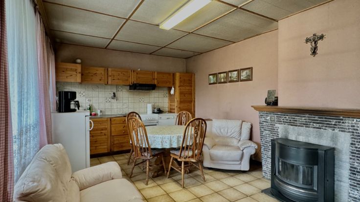 Rustig gelegen in het landelijke Kerksken bieden wij deze grote, te renoveren woning aan.  Dichtbij lagere school, bushalte, bakker, beenhouwer, supermarkt,... heeft deze woonst heel veel potentieel om verbouwd te worden tot een pareltje met zicht op het groen. Op het gelijkvloers bevinden zich een inkomhal, leefruimte en een ruime keuken.  De eerste verdieping biedt plaats aan drie grote slaapkamers en een beperkt ingerichte badkamer. Via de vaste trap bereiken we de zolder die nog kan omgetoverd worden tot één of meerdere slaapkamers en/of badkamer. De woning is deels voorzien van ramen in PVC met dubbele beglazing en deels houten ramen met enkel glas. Er is geen centrale verwarming aanwezig. Er is genoeg plaats voor meerdere wagens naast de woning en er is ook een garage en verschillende bergruimtes. De totale oppervlakte van het perceel is maar liefst 15 are 93 centiaren, hier komen al je tuindromen uit... Heb jij zin gekregen om deze woning te transformeren naar uw eigen wensen? Neem contact op met Peggy op 0471/72.46.20 en leg jouw bezoekmoment vast.   Renovatieplicht: ja