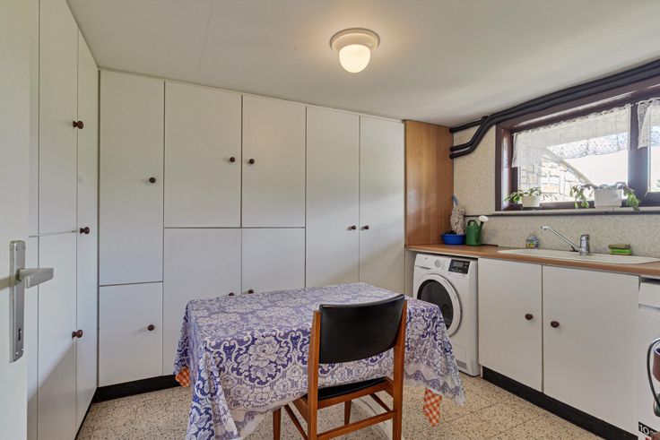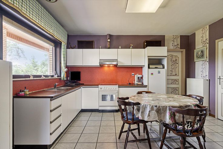 Deze ruime en goed onderhouden woning met 3 slaapkamers is uiterst rustig gelegen op een perceel van 2.310m² te Rosselaar, met een vlotte verbinding naar de omliggende gemeenten via de zuiderring! U betreedt de woning via een ruime inkomhal, met vestiaireruimte. De leefruimte bestaat uit een zithoek en een eethoek(met haard). Hier geniet u aangenaam veel lichtinval. De aansluitende keuken is ruim genoeg om een grote eettafel te plaatsen en is verder basic uitgerust met een koelkast, elektrische kookplaat, afzuigkap, heteluchtoven, dubbele spoeltafel en voldoende opbergruimte. Achter de leefruimte is er nog een aparte bureauruimte aanwezig. De nachthal geeft toegang tot de 3 ruime slaapkamers, badkamer en apart toilet. De badkamer is volledig betegeld en uitgerust met douche, ligbad en wastafel. De woning beschikt over een zeer ruime "leefkelder" van +- 170m², deze kelder bevindt zich op het gelijkvloers en is voorzien van een grote garage, wasberging en polyvalente ruimtes (hobbykamer, speelkamer, bureau,...). In de tuin kan je genieten van alle rust en voldoende privacy.
