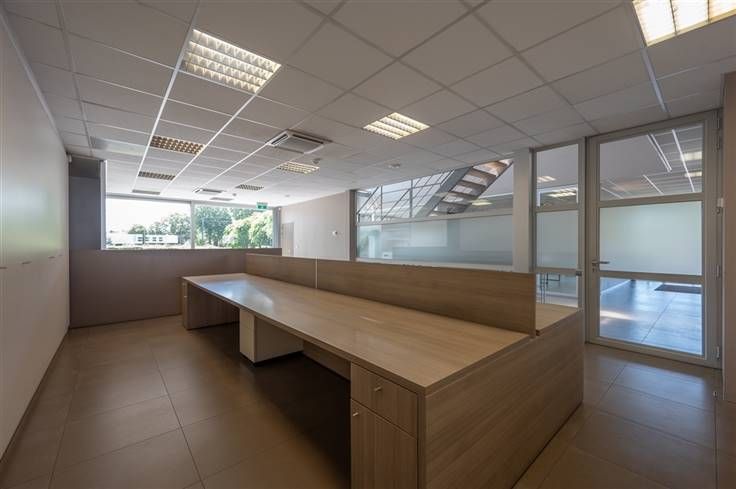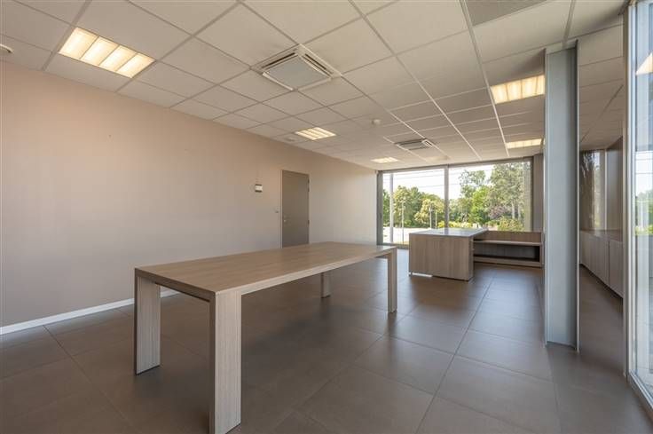 Instapklaar lichtrijk kantoorgebouw te huur van 520m² in Meulebeke op een industriële site.