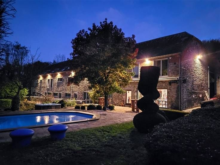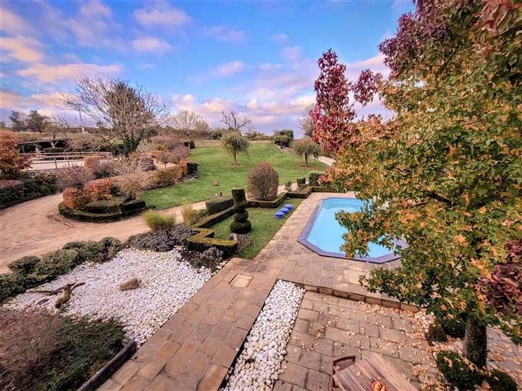 Volledig gerenoveerd vastgoedcomplex in 2021 op 17.700m² bestaande uit twee grote gîtes, 3 chambres d'hôtes, manege met stallen en buitenpiste, binnen- en buitenzwembaden, prachtige grote personeelsaccommodatie (apart huis) en 8700m² weiland in de buurt.