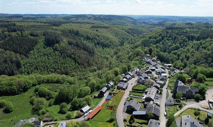 Orchimont (Vresse-sur-Semois): Mooi terrein met magistraal uitzicht over de bosrijke omgeving, te vinden in het kleine centrum van Orchimont, deelgemeente van Vresse-sur-Semois. Beeldt u zich evenwel niet te veel in bij de centrumligging: het is er bijzonder rustig. Orchimont is een charmant en authentiek dorpje, zéér fraai gelegen op een tweetal kilometer van het centrum van Vresse en de rivier de Semois, in een bosrijke omgeving tegen de Franse grens. De grond heeft een oppervlakte van 7a 66ca, meet ca. 46 meter aan de straatzijde, is ca. 22 meter diep en ligt volledig in woonzone met landelijk karakter. Buiten verkaveling, zonder bouwverplichting en vrije keuze van architect en aannemer. De situatie is uitzonderlijk: het terrein bevindt zich op een helling tussen twee straatjes en biedt de mogelijkheid tot het bouwen van een imposante woning met verschillende niveaus, met een toegang zowel langs de bovengelegen Rue de la Semois als via de Rue d’Angleterre aan de onderzijde. Een woning met 3 slaapkamers en 2 badkamers werd vergund. Plannen beschikbaar. De hangligging zorgt voor fantastische vergezichten op de heuvelachtige en bosrijke omgeving. Dit is de ideale uitvalsbasis voor liefhebbers van rust en natuur… al zullen ook actievelingen hier hun gading vinden tijdens eindeloze wandelingen, sportieve fiets- en mountainbikeritten of avontuurlijke kajaktochten