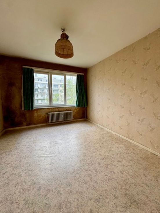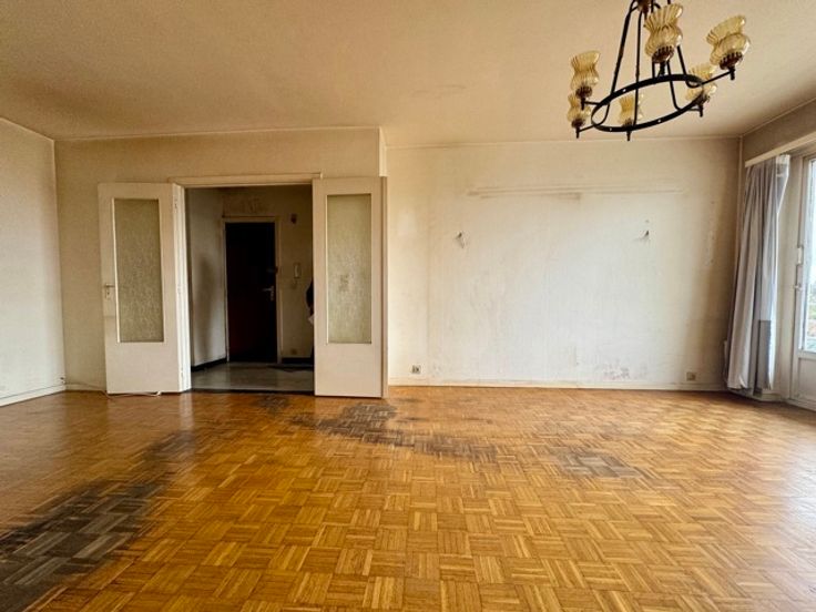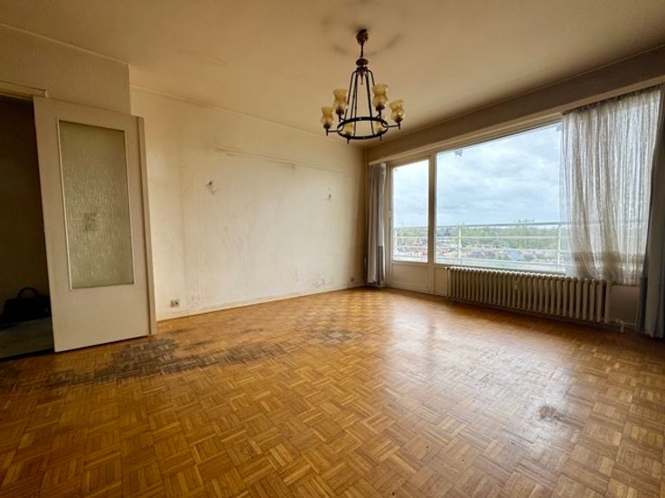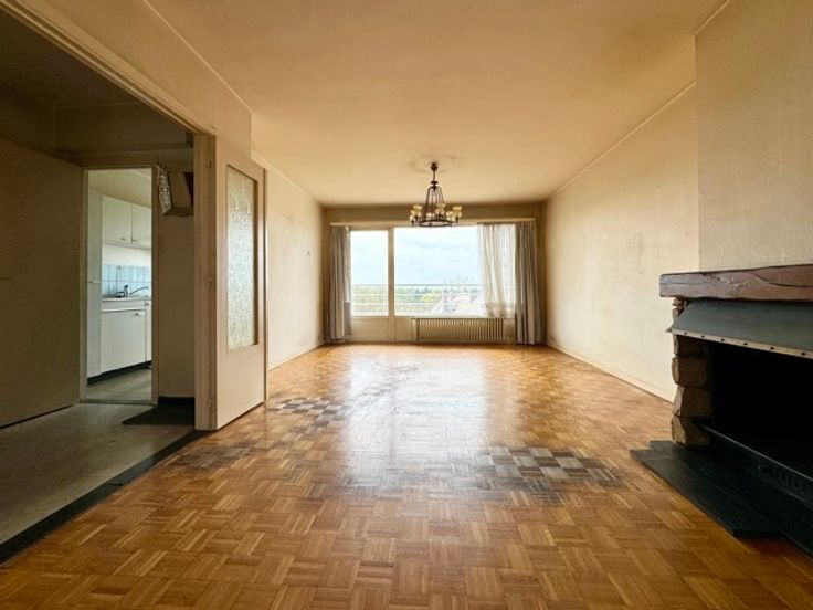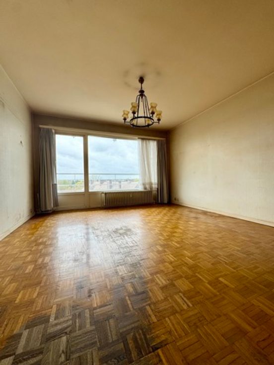 *** SOUS OPTION *** Myimmo vous propose ce spacieux et lumineux appartement situé au 6ème étage (Calme garanti) d'un immeuble se trouvant en retrait de la chaussée et offrant une superficie habitable de +/- 90m2. Il se compose d'un hall d'entrée avec placards, d'un lumineux séjour et salle à manger de +/- 30m2, d'une cuisine (dont le mur peut être abattu) de +/- 7m2, un hall de nuit, une grande chambre de +/- 13m2, une deuxième de +/- 9m2 communicant avec un bureau de +/- 7m2 (possibilité d'en faire une grande chambre), d'une salle de bains et d'une toilette séparée. L'appartement jouit d'une magnifique terrasse de +/- 9m2 offrant une vue dégagée et verdoyante. Possibilité garage de deux garages box (Supl. 30.000€). Appartement à rénover mais offrant un très beau potentiel. Nouvelle chaudière collective (PEB B!!). Proximité commerces, écoles (Lycée Francais), transports en commun,... A visiter sans tarder. D'autres biens disponibles sur www.myimmo.be
