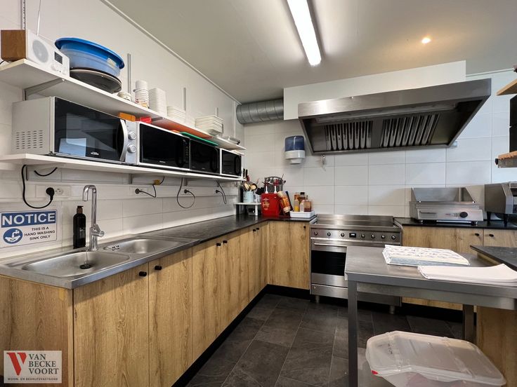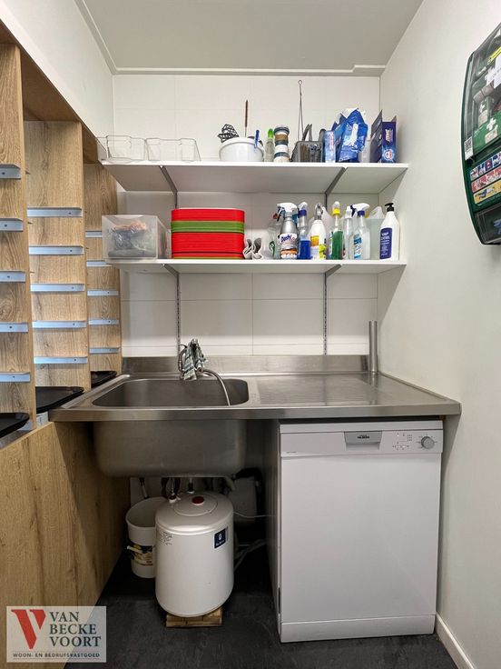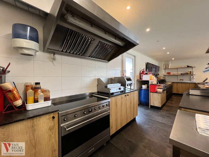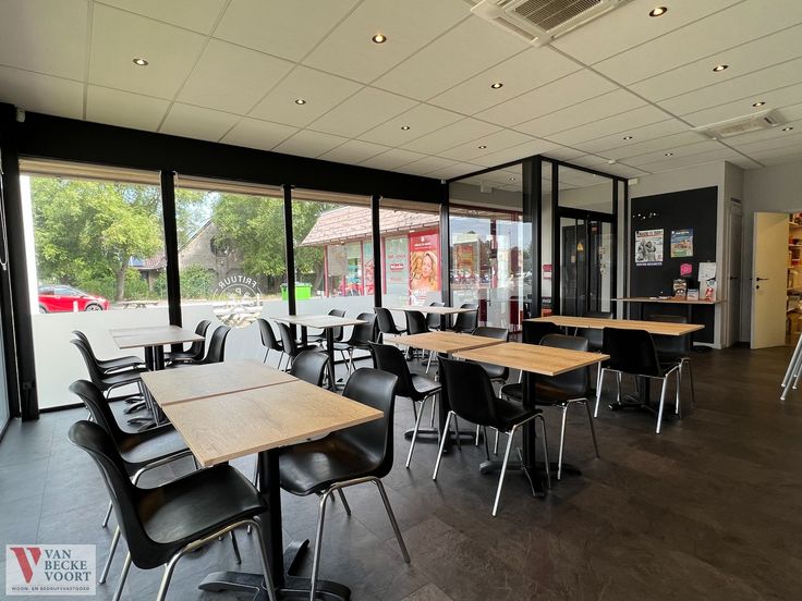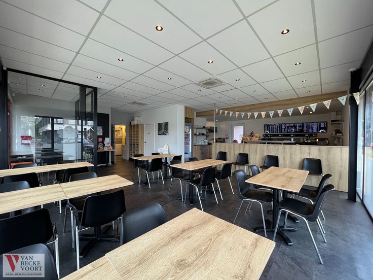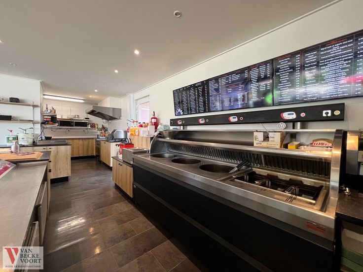 De eetzaal is voorzien van 25 zitplaatsen (uitbreiding mogelijk), de keuken is ingericht met 4 micro-golfovens ,spoelbak, elektrische kookplaats met 6 kookzones, dampkap, oven, plancha bakplaat, 2 salamanders, compleet uitgeruste friteuse met 3 bekkens en 3 frituurmanden, koeltoonbank en afwashoek. Er is een afzonderlijke stockageruimte met meerdere vriezers, sanitair voor het cliënteel, bij mooi weer kunnen de klanten gezellig buiten zitten op de tuinbanken.