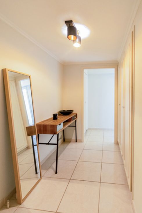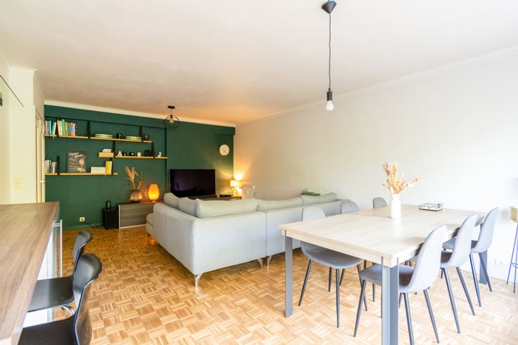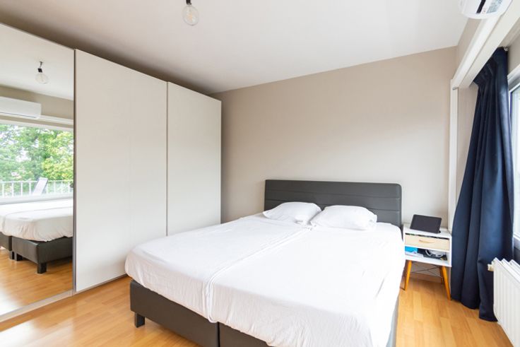 Heel gezellig, gerenoveerd appartement van 1974 vlakbij het centrum van Strombeek-Bever met vlotte verbinding naar Brussel. Je stapt dit appartement binnen via de centrale inkomhal, voorzien van vestiaire en afzonderlijk toilet. Langs de rechterzijde komen we in de leefruimte met open keuken en een ruim, eerste terras. Vanop het terras is er zicht op de aangelegde tuin en op het Atomium. De keuken is volledig uitgerust met alle toestellen die je nodig hebt. Langs de linkerzijde van het appartement is er een zeer ruime slaapkamer met toegang tot het 2de terras. Verder is er nog een volledig uitgeruste badkamer met bad, lavabo en aansluitingen voor wasmachine en droogkast. In het gebouw is er eveneens een privatieve kelder aanwezig en bestaat er de mogelijkheid tot het huren van een ondergrondse parkeerplaats (voor € 80 per maand). Het appartement is perfect instapklaar en werd onlangs vernieuwd met hoogrendementsbeglazing + er is een airco geïnstalleerd in de slaapkamer waardoor het binnen steeds aangenaam fris is in de zomer. Door de combinatie van de recente renovatiewerken heeft dit appartement een EPC score B. De gemeenschappelijke lasten bedragen € 138 per maand (indien als investering: € 90 huurder en €48 eigenaar). Met het openbaar vervoer ben je op 20 minuten in het bruisende stadsleven van Brussel en in de nabijheid van het appartement zijn winkels, restaurants en recreatieve voorzieningen allemaal gemakkelijk bereikbaar. Of je nu op zoek bent naar je eerste