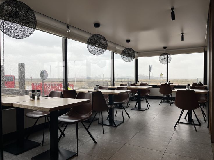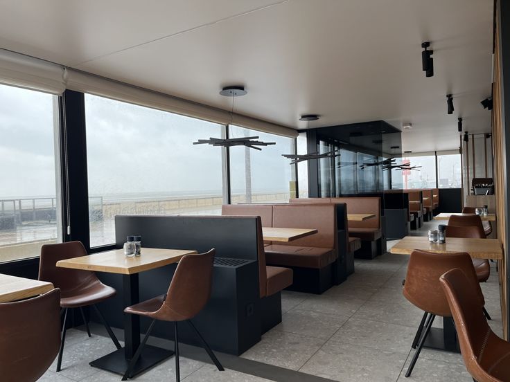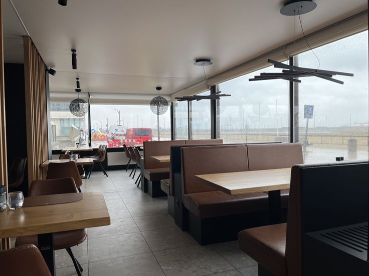 Momenteel is de indeling als volgt: brasserie met gelagzaal met overal zicht op zee, bar, toiletten voor dames en heren, professioneel ingerichte keuken, terras op de Zeedijk.