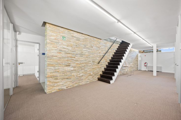 De kelder, gelegen op straatniveau, heeft bovendien een oprit met een overdekte carport met oplaadinfrastructuur. Er zijn ook zes aparte ruimtes, een kitchenette, sanitaire voorzieningen en de technische ruimte.