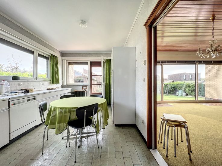 Deze mooie te renoveren villa bevindt zich in een rustige en aangename buurt. Toch ligt ze strategisch dichtbij het centrum, openbaar vervoer en de belangrijke verbindingswegen naar de E40 en E403. Het potentieel van dit pand is enorm. Indeling: ruime inkomhal, waskamer, berging, apart gastentoilet, garage met plaats voor twee wagens, lichtrijke woonkamer met zicht op de tuin en open haard, ruime keuken, badkamer met ligbad, lavabo en toilet, drie volwaardige slaapkamers. Naast de woning is er nog een aparte garage en twee tuinhuisjes. Deze woning is ideaal voor een gezin die op zoek is naar een ruime en rustige plek om te wonen, met voldoende slaapkamers en een grote tuin voor kinderen om in te spelen of iemand met een renovatie-enthousiasme om het potentieel van de villa volledig te benutten. Dit kan een geweldige kans zijn om een huis naar uw eigen smaak en behoeften te creëren. Renovatieplicht: ja