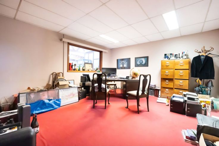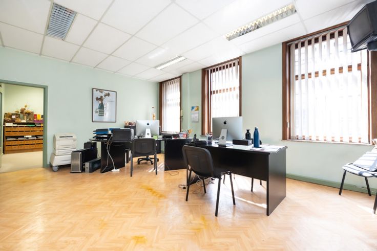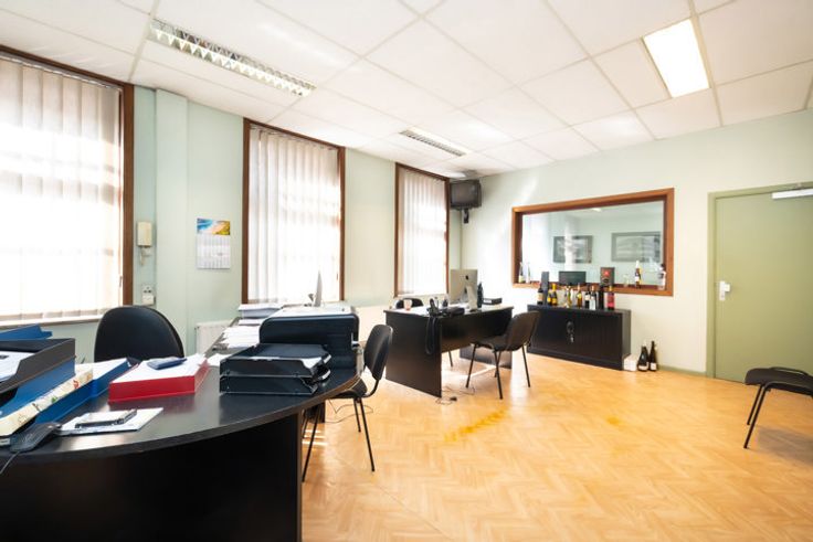 Brussel-Laeken, vlakbij de metro en de Ring, in een mooi gebouw met karakter, een magazijn van ±1.000m² en voorkantoren van ±100m². Grote inkom met sectionale poort. Afmetingen en cijfers zijn louter informatief!